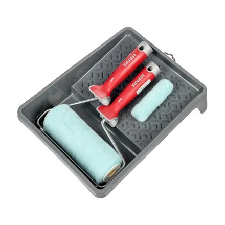 Anza Muurverfset ELON – 5 delig is een handig, professioneel verfset voor de kleinere, medium grove ondergronden. Deze muurverfset is ideaal voor de leine verfklussen zoals een toilet, gang en wanneer er een muur in een accentkleur geschilderd dient te worden. De Anza ELON roller is pluisvrij en geschikt voor het verwerken van alle soorten muurverf.