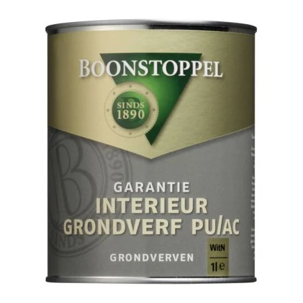 Boonstoppel Garantie Interieur Grondverf PU/AC is een kras- en slijtvaste, isolerende grondverf voor binnen op basis van polyurethan-acrylaat. Boonstoppel Garantie Interieur Grondverf PU/AC heeft een gemakkelijke verwerking en is duurzaam elastisch. Voor het gronden van hout en het overgronden van reeds met roestwerende grondverf- of primerlagen voorzien metaal. Voor het schilderen van onbehandeld hout grond je eerst eenmaal met de Boonstoppel grondverf en vervolgens tweemaal met de Garantie Interieurlak Mat, Zijdeglans of Hoogglans. Voor het isoleren van inhoudsstoffen zoals Merbau breng je twee lagen van deze grondverf aan met tussen de lagen een droogtijd van 24 uur.