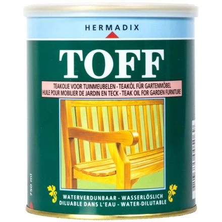 TOFF is watergedragen en oplosmiddelvrij, dus minder milieubelastend dan gewone teakolie. Daarnaast laat Hermadix TOFF Teakolie geen film achter. Hierdoor ontstaan er geen bladders en wordthet onderhoud vergemakkelijkt.