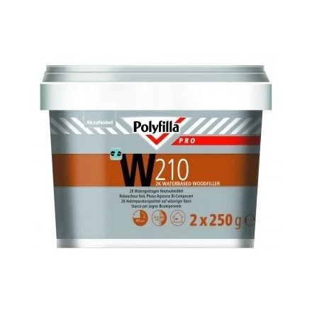 Polyfilla Pro 2K Houtvulmiddel Acryl W210 op basis van gips/polymeerdispersie. Voor het repareren van gaten in houten ondergronden.