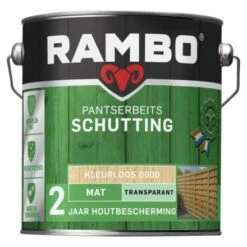 Rambo Pantserbeits voor schuttingen heeft een natuurlijk matte uitstraling, is vochtregulerend, waterafstotend en versterkt de nerftekening. Het hout van de schutting wordt met twee lagen optimaal beschermd en blijft langer mooi. Door de snelle opdroogtijd (van slechts 1 uur) kun je de klus binnen een dag afmaken. Makkelijk en drupvrij aan te brengen.