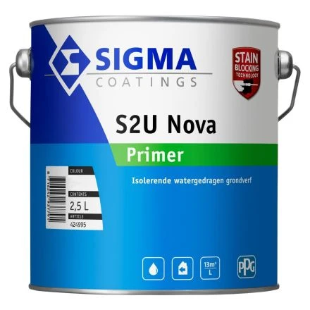 Sigma S2U Nova Primer is een sneldrogende, watergedragen, isolerende grondverf voor binnen. Sigma S2U Nova Primer is geschikt voor het gronden en overgronden van hout. Ook kun je met de Sigma S2U Nova Primer reeds geschilderde staal en non-ferro metalen, bestaande, intacte, geschuurde verflagen en diverse kunststoffen overgronden. Deze Sigma Nova Primer is geurarm en heeft een uitstekende dekking en hechting. Deze Sigma Primer Interieur laat zich, ook door de minder geoefende schilder, prima verwerken met een ronde kwast of viltroller