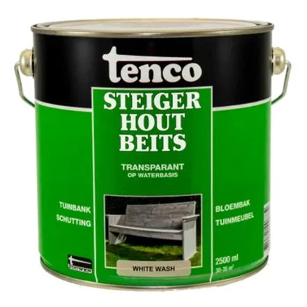 Tenco Steigerhoutbeits – White Wash is een transparante beits op waterbasis, speciaal ontwikkeld om steigerhout en ander zachthout zoals ruw vurenhout te behandelen. Tenco Steigerhoutbeits accentueert de houtnerf en beschermt het hout tegen weersinvloeden. Hierdoor geeft het je houten objecten, in de tuin of woning, een nostalgische afwerking en het karakter van doorleefd hout.