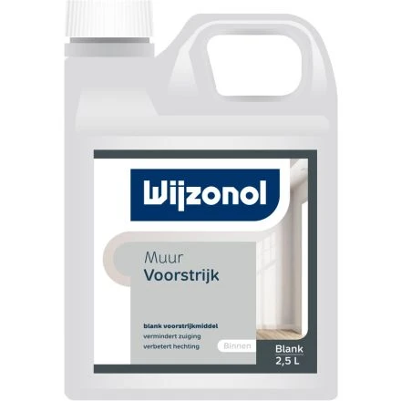 Wijzonol Interieur Muurvoorstrijk is een kleurloos voorstrijkmiddel waarmee u zuiging voorkomt van de ondergrond zoals gipsplaat, beton en stukwerk. Dit product is geschikt voor binnen en buiten.