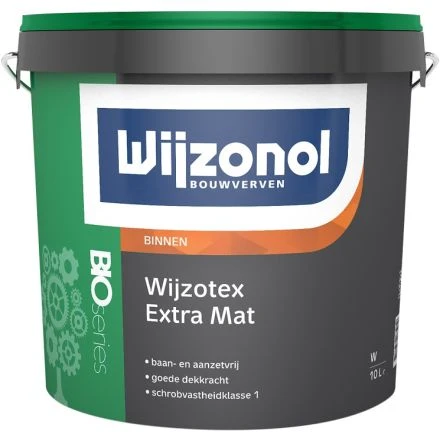 Wijzonol Wijzotex Extra Mat is een oplosmiddelvrije, waterverdunbare, schrobvaste en aanzetvrije gladde muurverf voor binnen, op basis van een duurzaam verkregen bindmiddel*. Wijzonol Wijzotex Extra Mat is geschikt voor het schilderen van steenachtige ondergronden zoals beton, metsel- en (spack)pleisterwerk, plaatmateriaal en op glasweefsel binnen. Wijzonol Wijzotex Extra Mat is ook toepasbaar op onbehandelde of met acrylaat muurverf behandelde ondergronden en voor het schilderen van beschut buitenwerk. Wijzonol Wijzotex Extra Mat heeft een goede dekkracht en een uitstekende verwerking. Deze muurverf is aanzetvrij en makkelijk bij te werken indien nodig.